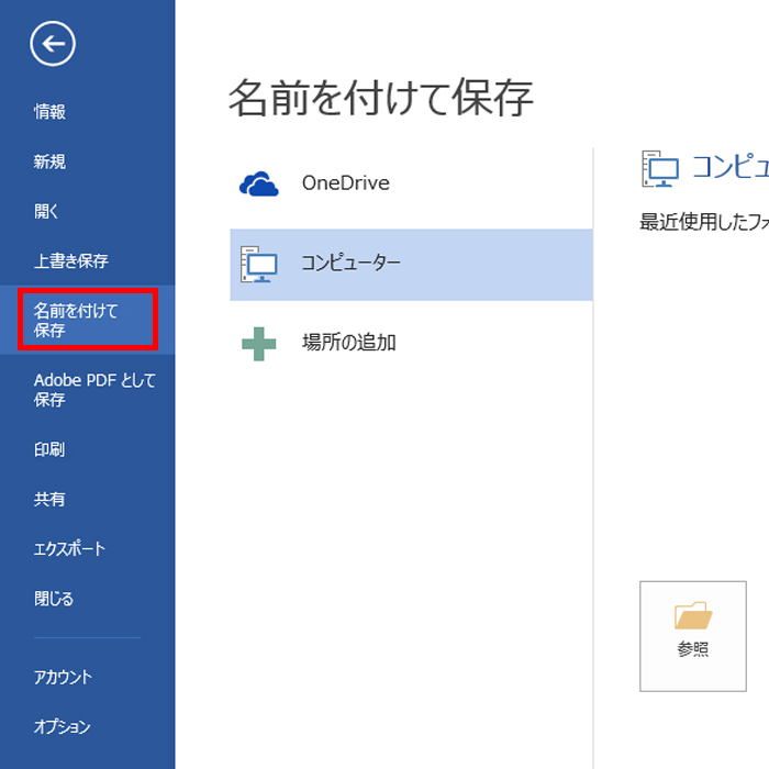 保存場所とファイル名(任意)を決定してください。ファイルの種類の項目が「PDF(*.pdf)」となっているのを確認してから、「オプション」をクリックしてください。